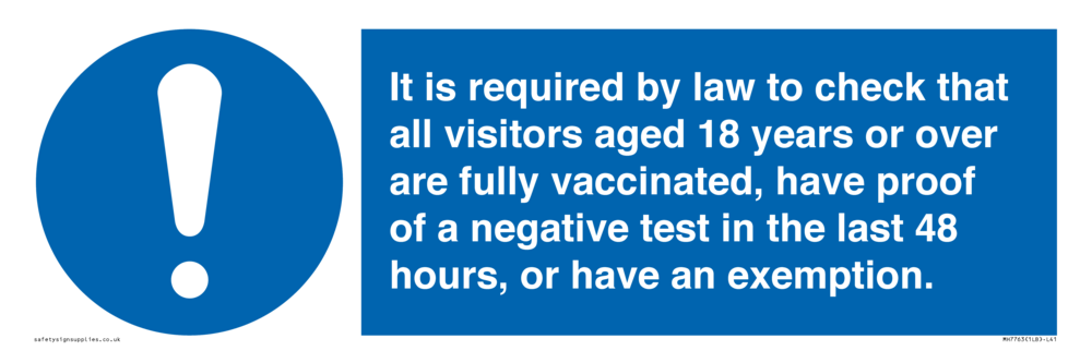 It is required by law to check that all visitors aged 18 years or over are fully vaccinated, have proof of a negative test in the last 48 hours, or have an exemption. Sign