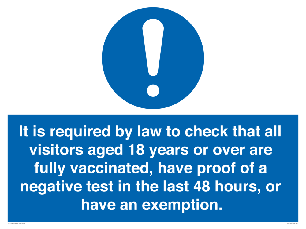 It is required by law to check that all visitors aged 18 years or over are fully vaccinated, have proof of a negative test in the last 48 hours, or have an exemption. Sign