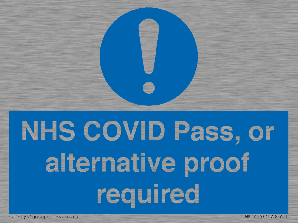 NHS COVID Pass, or alternative proof required Sign