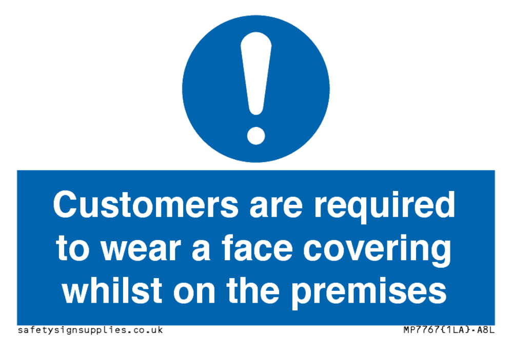 Sign Text: Customers are required to wear a face covering whilst on the premises