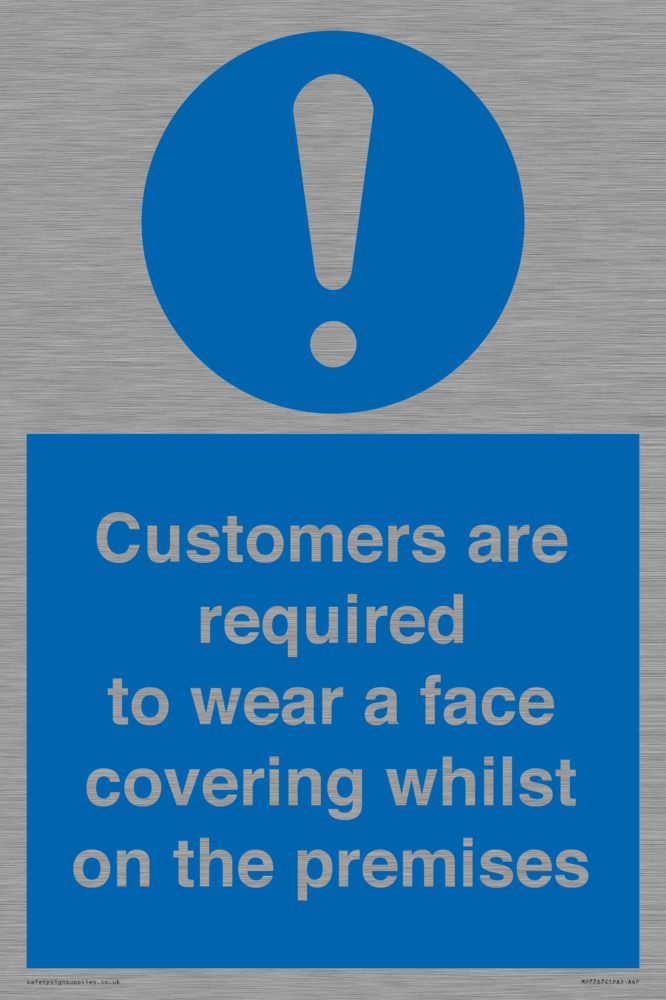 Customers are required to wear a face covering whilst on the premises Sign