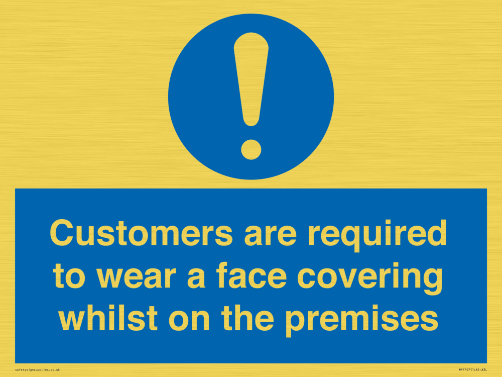 Customers are required to wear a face covering whilst on the premises Sign