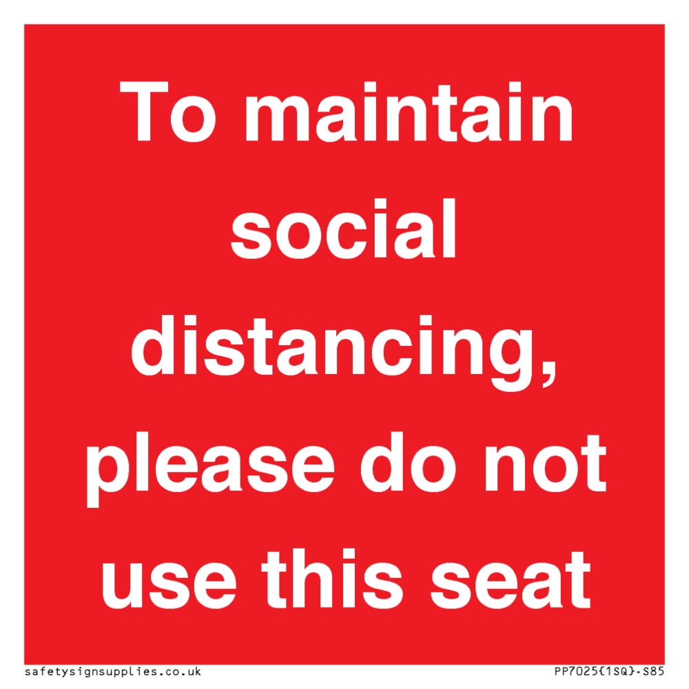 Sign Text: To maintain social distancing, please do not use this seat