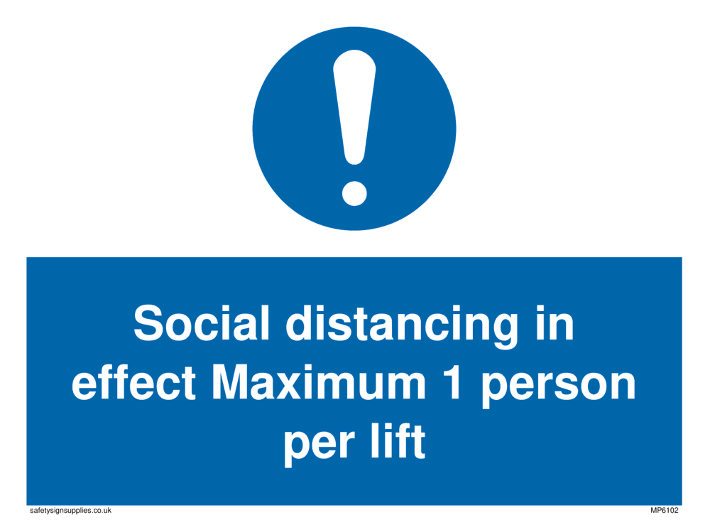 Sign Text: Social distancing in effect Maximum 1 person per lift