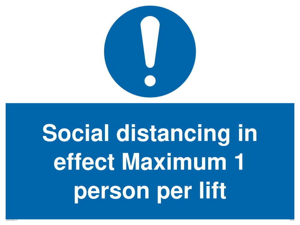 This sign contains a general Mandatory Exclamation Symbol - exclamation mark in white on blue circle background.