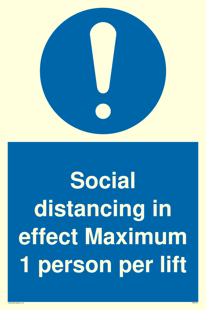 Sign Text: Social distancing in effect Maximum 1 person per lift