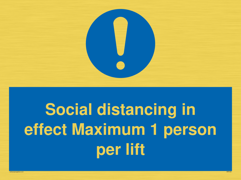 Sign Text: Social distancing in effect Maximum 1 person per lift