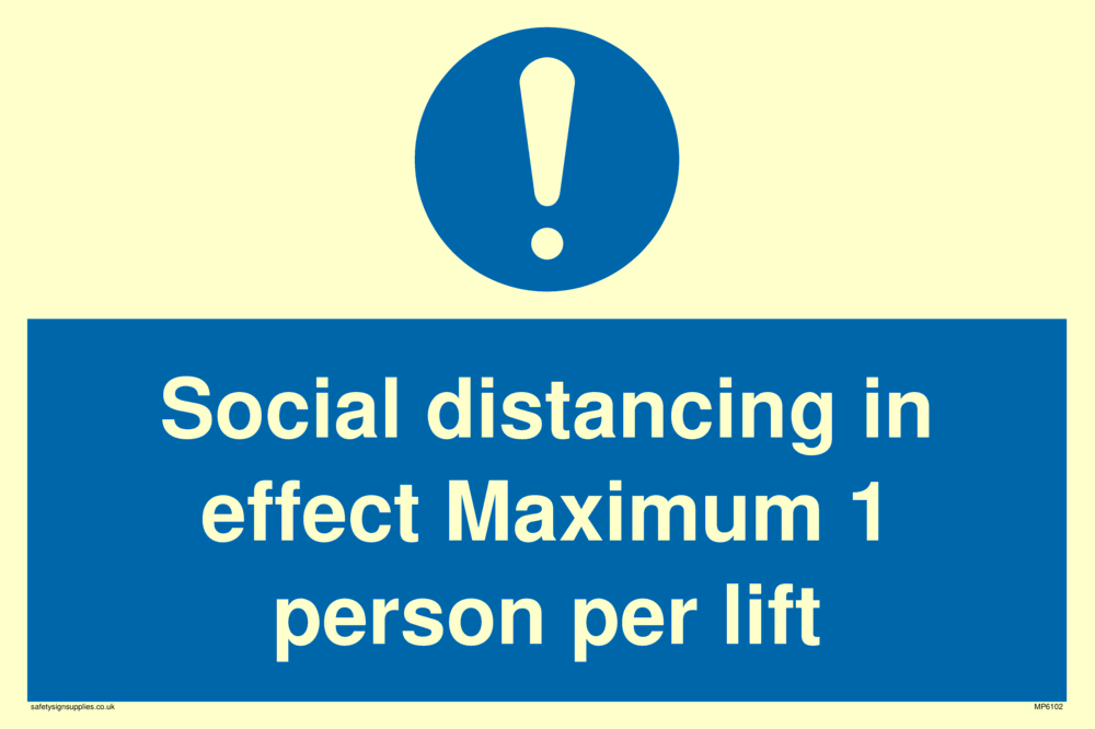 Sign Text: Social distancing in effect Maximum 1 person per lift