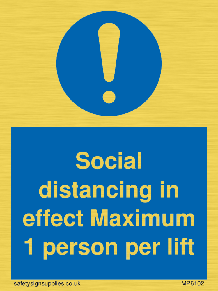 Sign Text: Social distancing in effect Maximum 1 person per lift