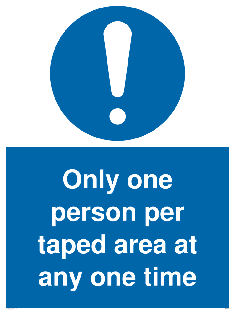 This sign contains a general Mandatory Exclamation Symbol - exclamation mark in white on blue circle background.