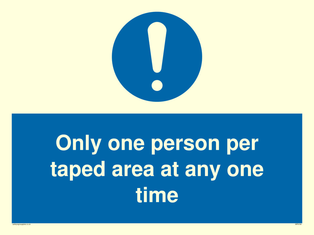 This sign contains a general Mandatory Exclamation Symbol - exclamation mark in white on blue circle background.