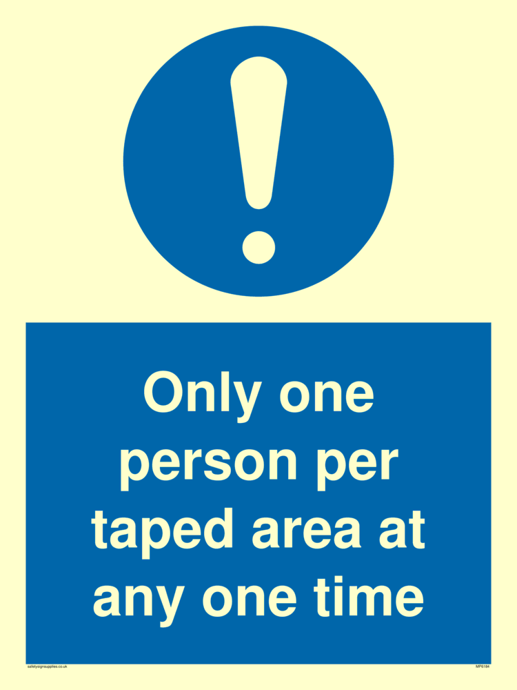 Sign Text: Only one person per taped area at any one time