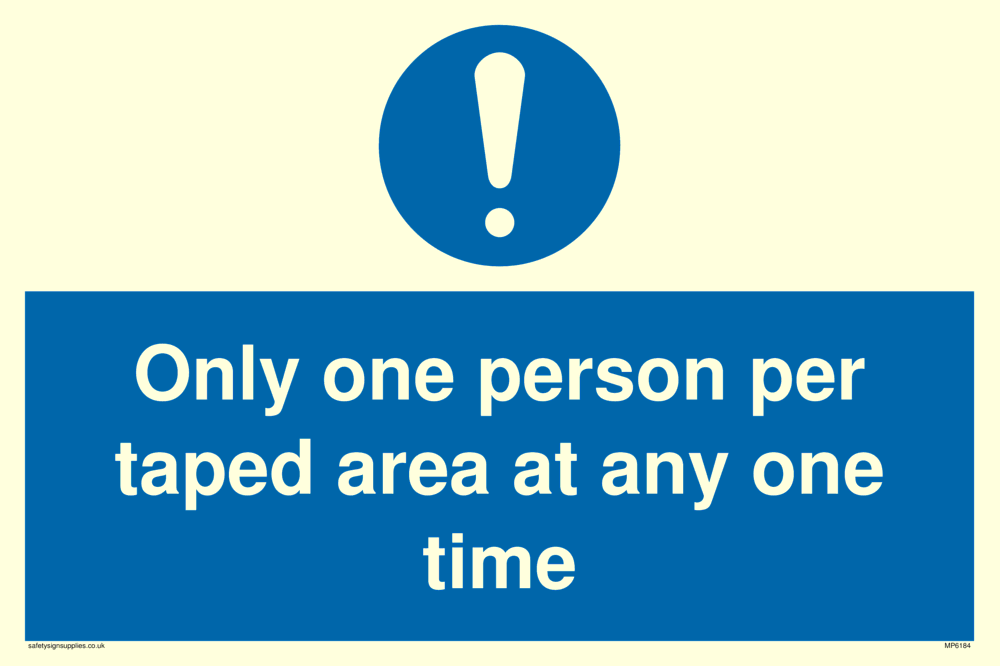 This sign contains a general Mandatory Exclamation Symbol - exclamation mark in white on blue circle background.