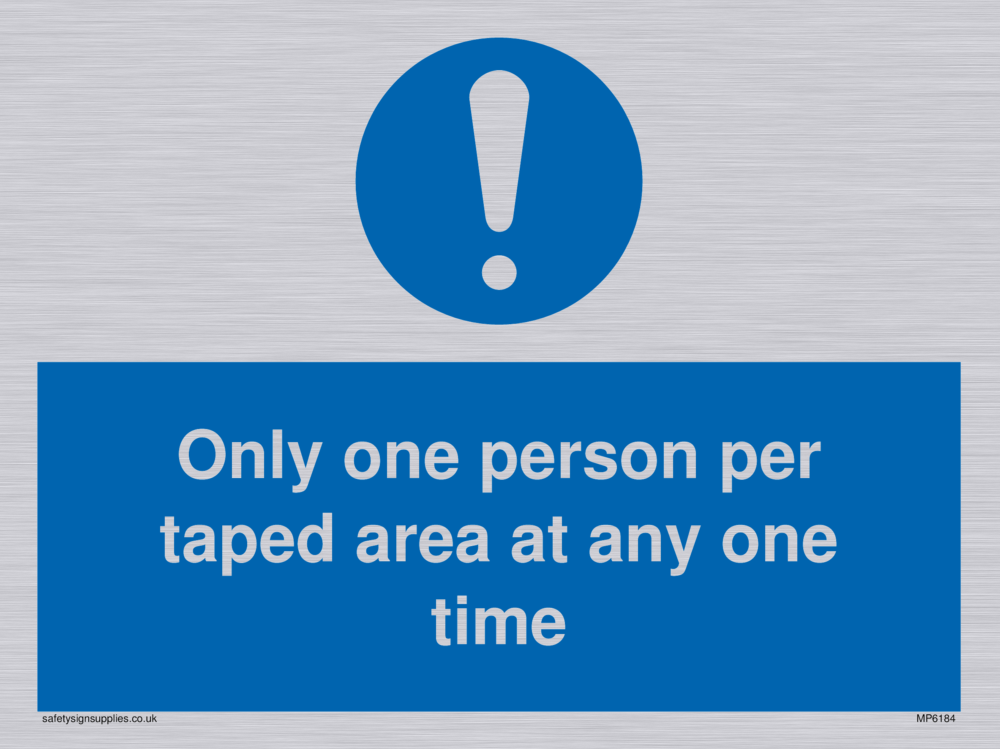 This sign contains a general Mandatory Exclamation Symbol - exclamation mark in white on blue circle background.