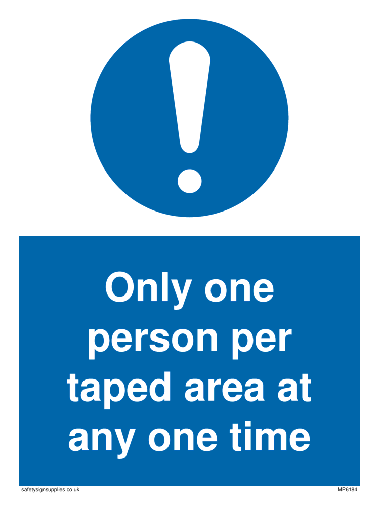 This sign contains a general Mandatory Exclamation Symbol - exclamation mark in white on blue circle background.