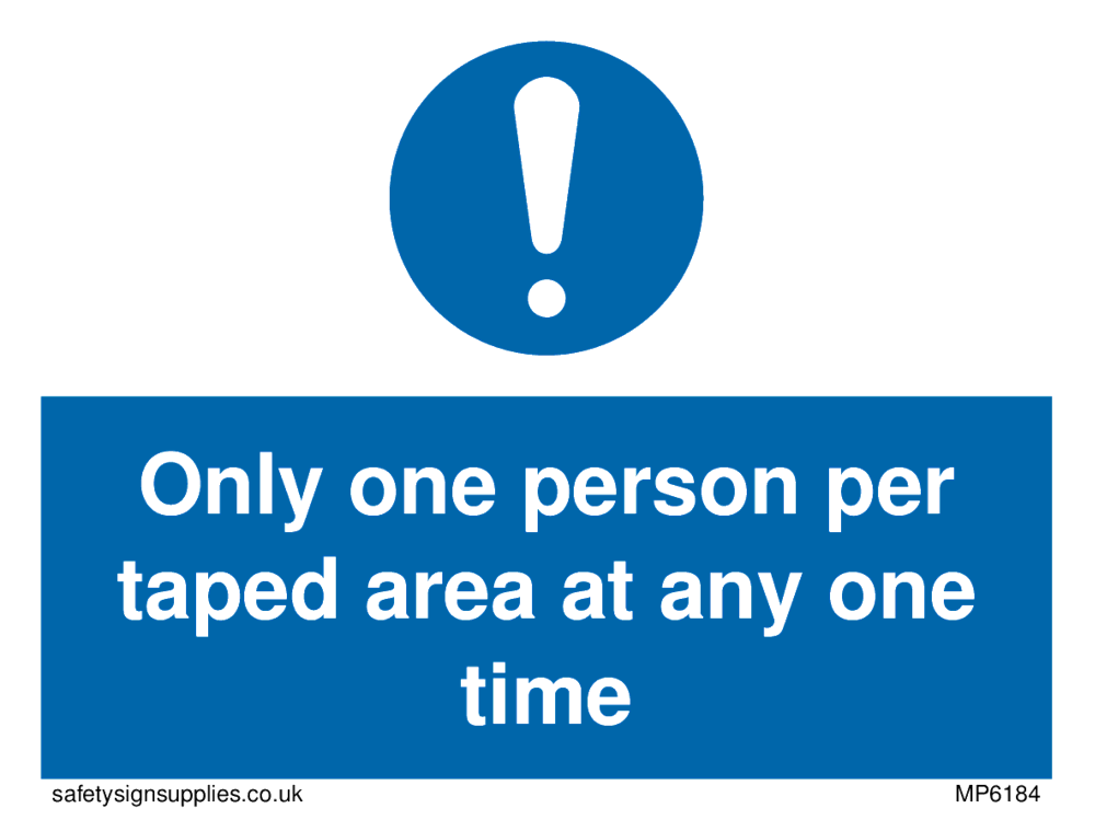 This sign contains a general Mandatory Exclamation Symbol - exclamation mark in white on blue circle background.