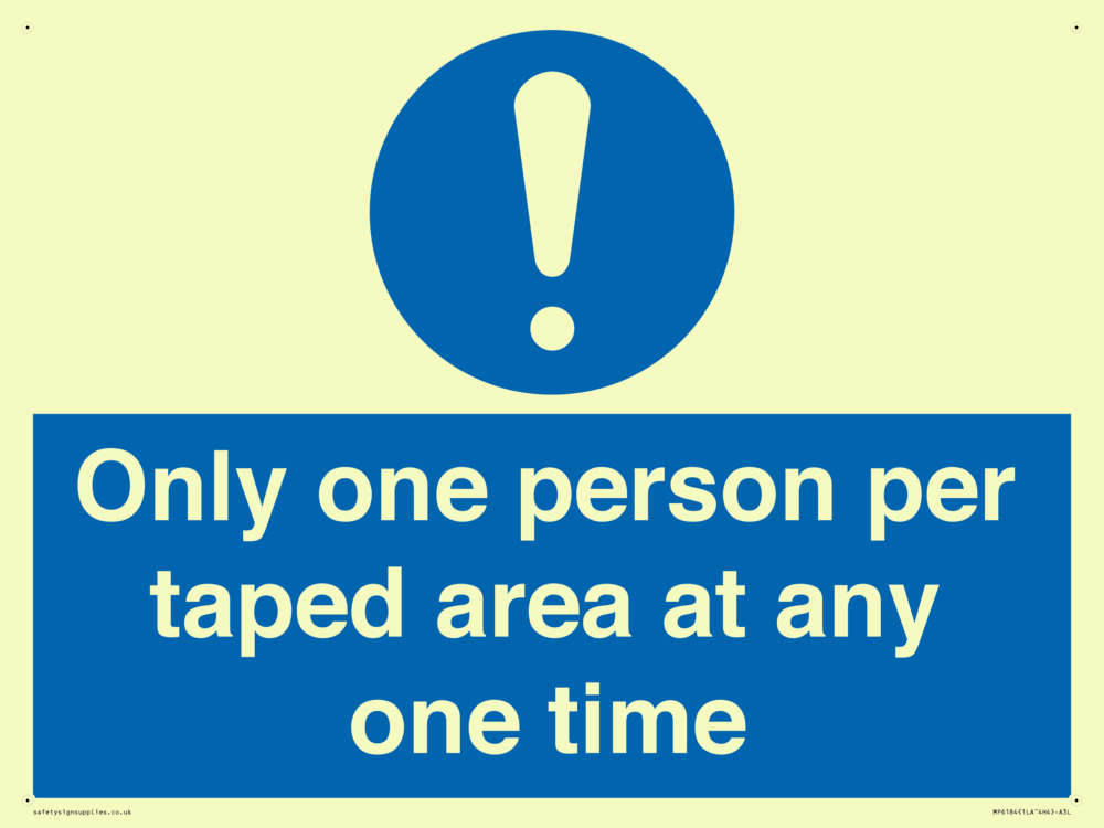 Sign Text: Only one person per taped area at any one time