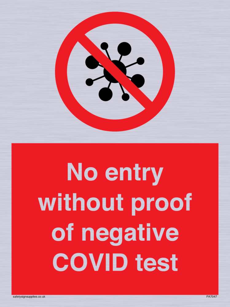 No entry without proof of negative COVID test Sign