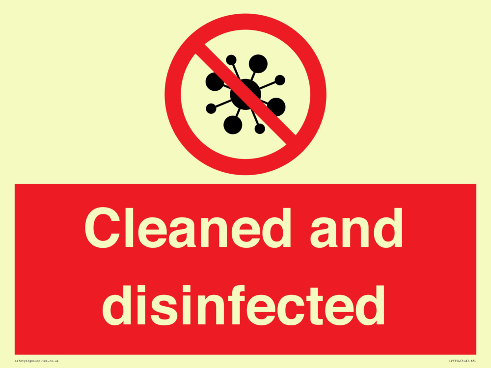 Cleaned and disinfected Sign