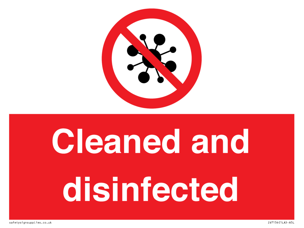 Sign Text: Cleaned and disinfected
