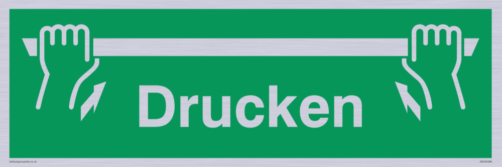 This sign contains a push /pull to open symbol - hand pushing or pulling bar with arrow in white on green background. Comes with a self adhesive backing. 100mm or approximately 4" high. 300mm or approximately 12" wide.