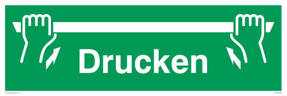 This sign contains a push /pull to open symbol - hand pushing or pulling bar with arrow in white on green background. Comes with a self adhesive backing. 150mm or approximately 6" high. 450mm or approximately 18" wide.