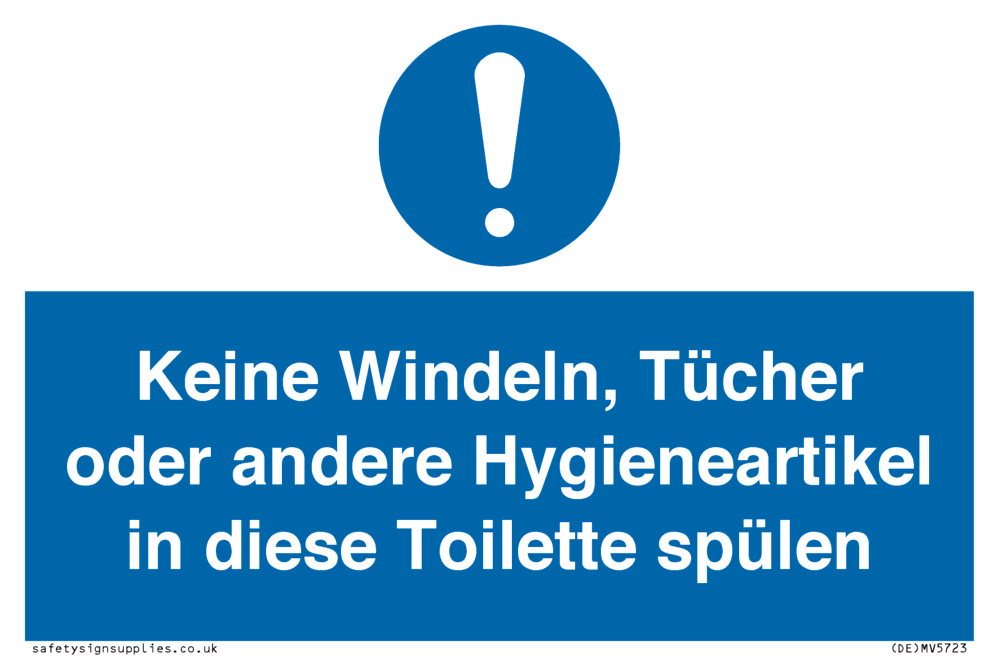 This sign contains a general Mandatory Exclamation Symbol - exclamation mark in white on blue circle background.