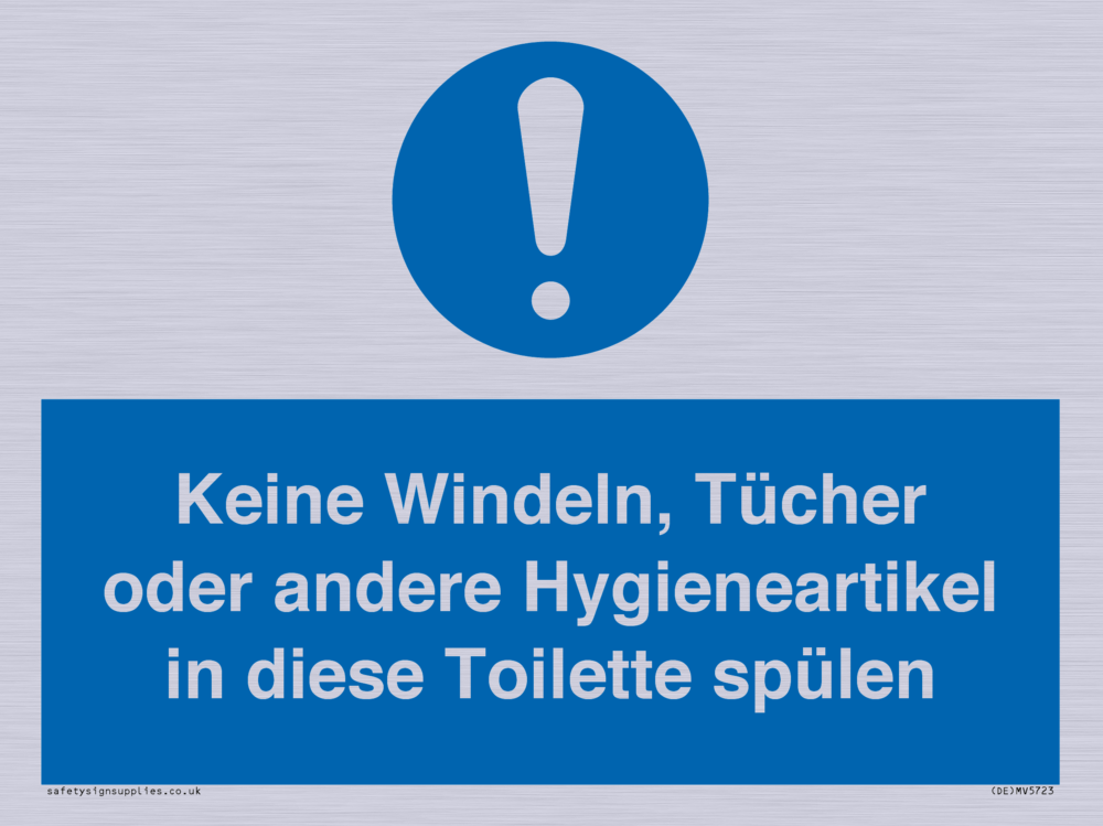 Sign Text: Keine Windeln, Tücher oder andere Hygieneartikel in diese Toilette spülen