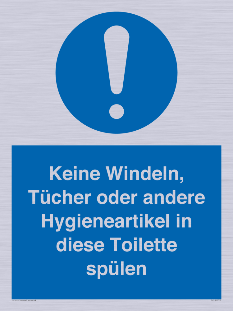 Sign Text: Keine Windeln, Tücher oder andere Hygieneartikel in diese Toilette spülen