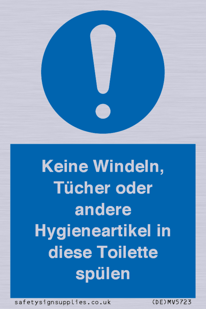 Sign Text: Keine Windeln, Tücher oder andere Hygieneartikel in diese Toilette spülen