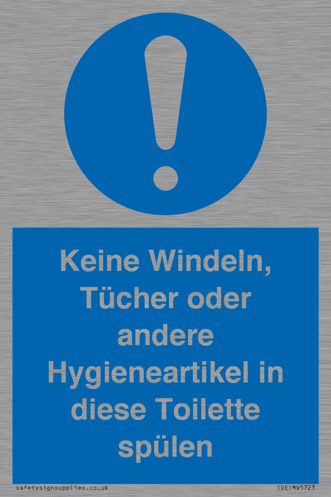 This sign contains a general Mandatory Exclamation Symbol - exclamation mark in white on blue circle background.