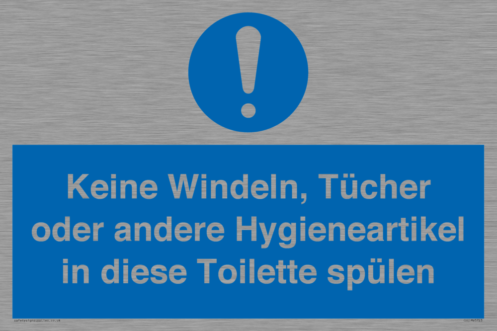 Sign Text: Keine Windeln, Tücher oder andere Hygieneartikel in diese Toilette spülen