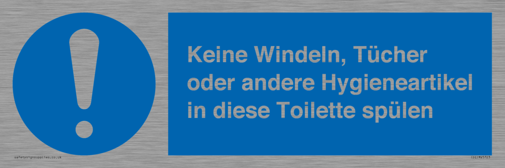 Sign Text: Keine Windeln, Tücher oder andere Hygieneartikel in diese Toilette spülen