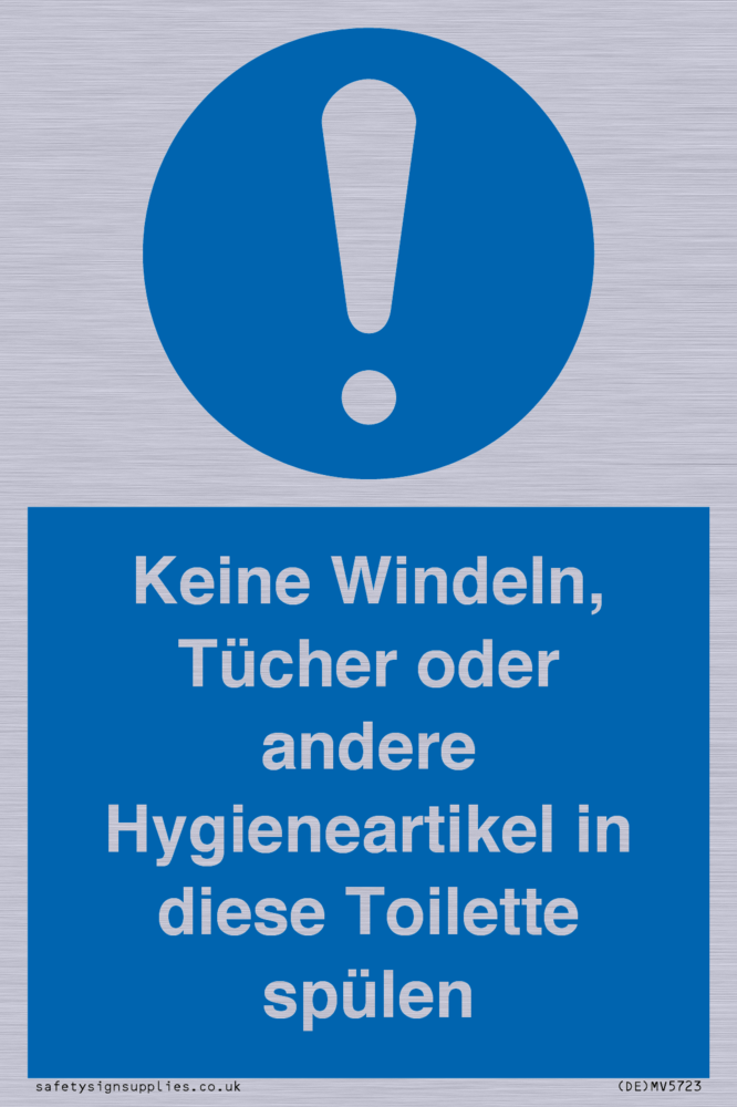 This sign contains a general Mandatory Exclamation Symbol - exclamation mark in white on blue circle background.