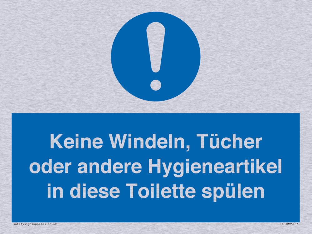 Sign Text: Keine Windeln, Tücher oder andere Hygieneartikel in diese Toilette spülen