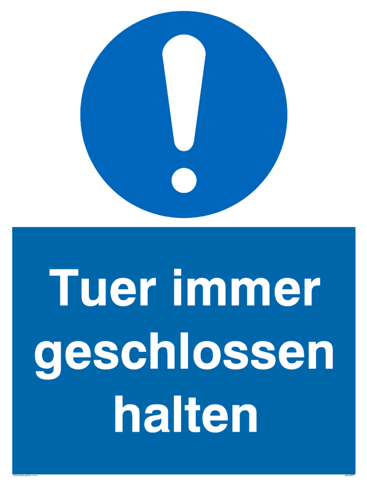 This sign contains a general Mandatory Exclamation Symbol - exclamation mark in white on blue circle background.
