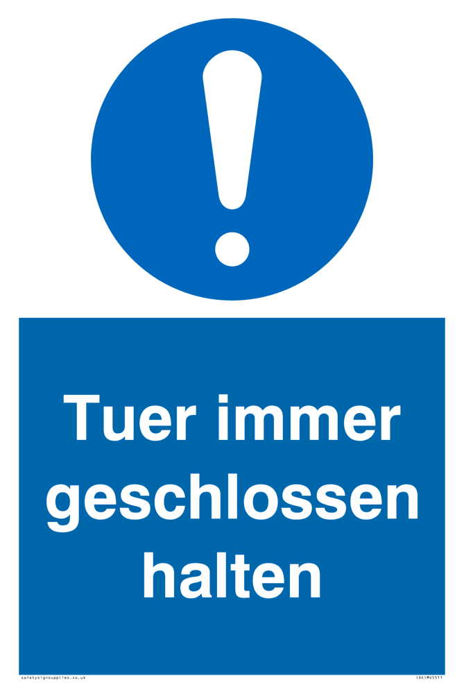 This sign contains a general Mandatory Exclamation Symbol - exclamation mark in white on blue circle background.