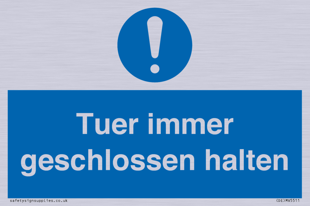 Sign Text: Tuer immer geschlossen halten