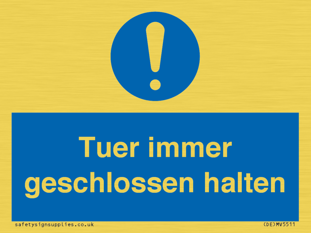 Sign Text: Tuer immer geschlossen halten