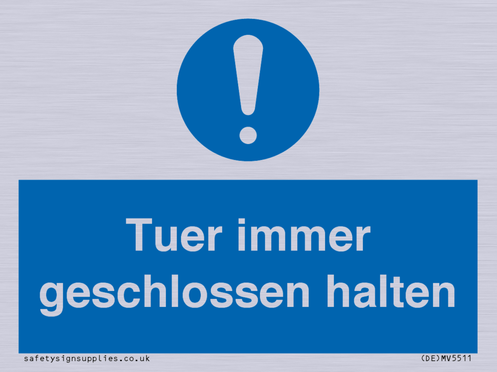 This sign contains a general Mandatory Exclamation Symbol - exclamation mark in white on blue circle background.