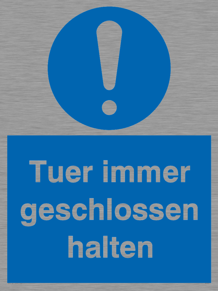 This sign contains a general Mandatory Exclamation Symbol - exclamation mark in white on blue circle background.