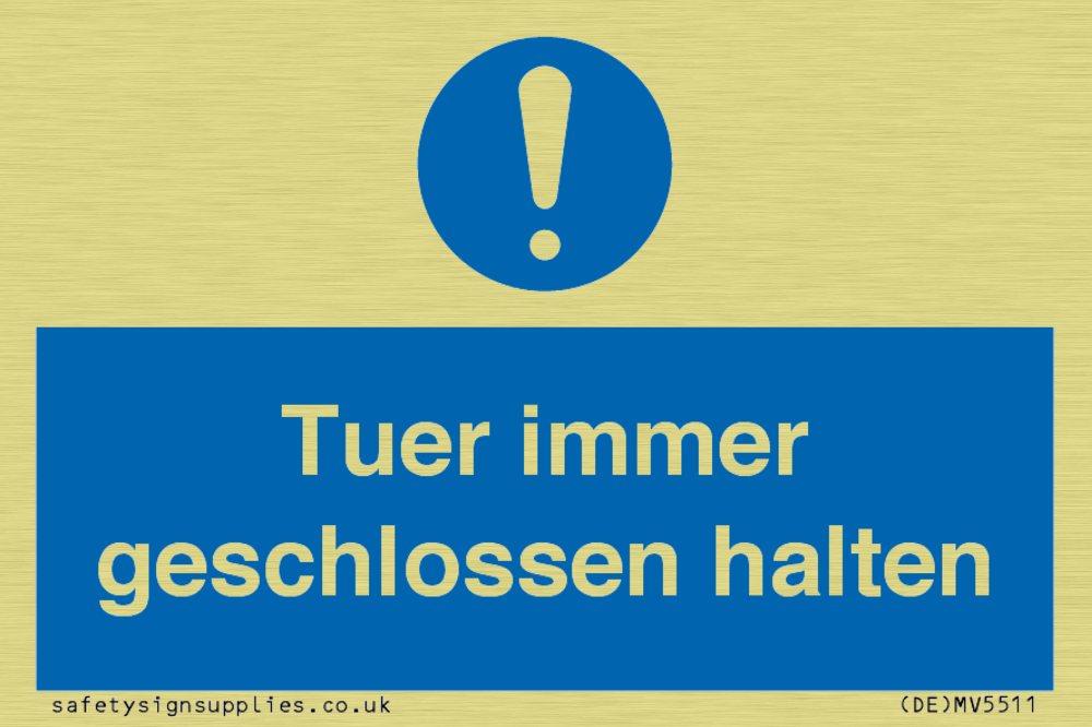 This sign contains a general Mandatory Exclamation Symbol - exclamation mark in white on blue circle background.