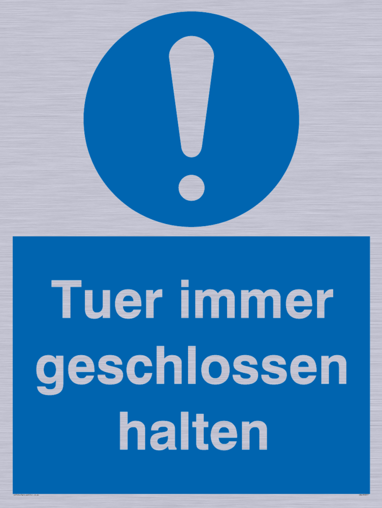 This sign contains a general Mandatory Exclamation Symbol - exclamation mark in white on blue circle background.