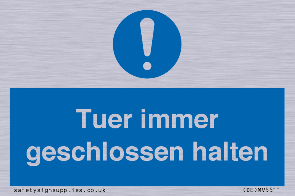 This sign contains a general Mandatory Exclamation Symbol - exclamation mark in white on blue circle background.