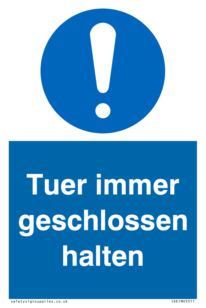 This sign contains a general Mandatory Exclamation Symbol - exclamation mark in white on blue circle background.