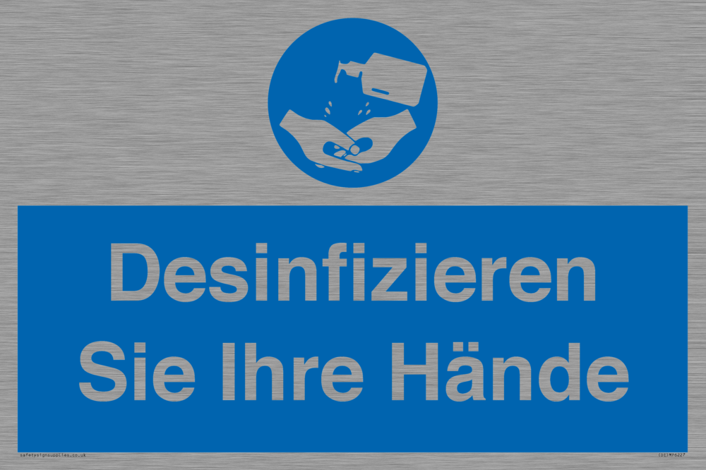 Sign Text: Desinfizieren Sie Ihre Hände