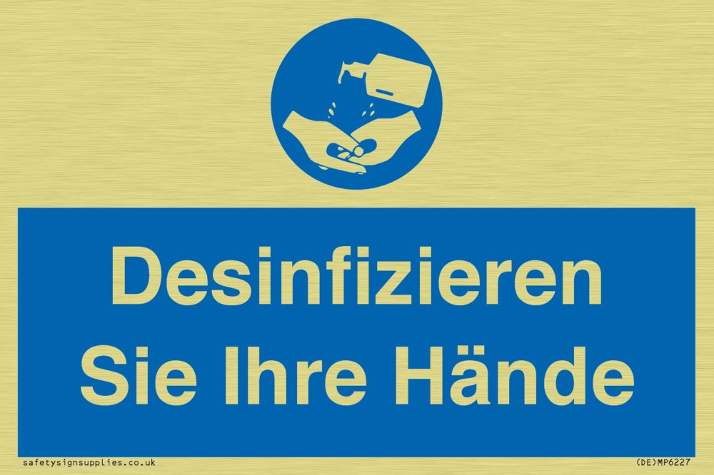 Sign Text: Desinfizieren Sie Ihre Hände
