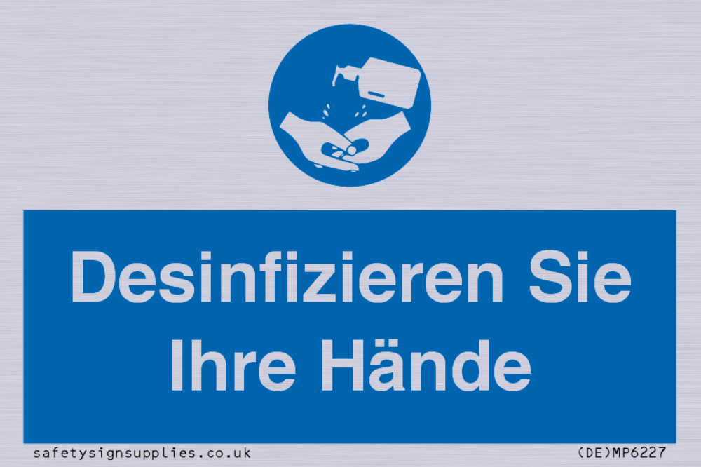 Sign Text: Desinfizieren Sie Ihre Hände