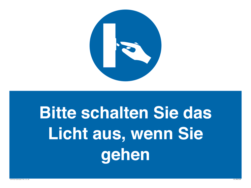 Sign Text: Bitte schalten Sie das Licht aus, wenn Sie gehen