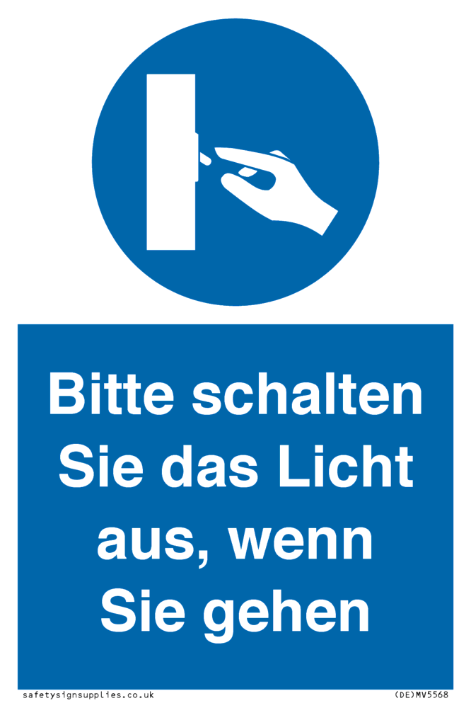 Sign Text: Bitte schalten Sie das Licht aus, wenn Sie gehen